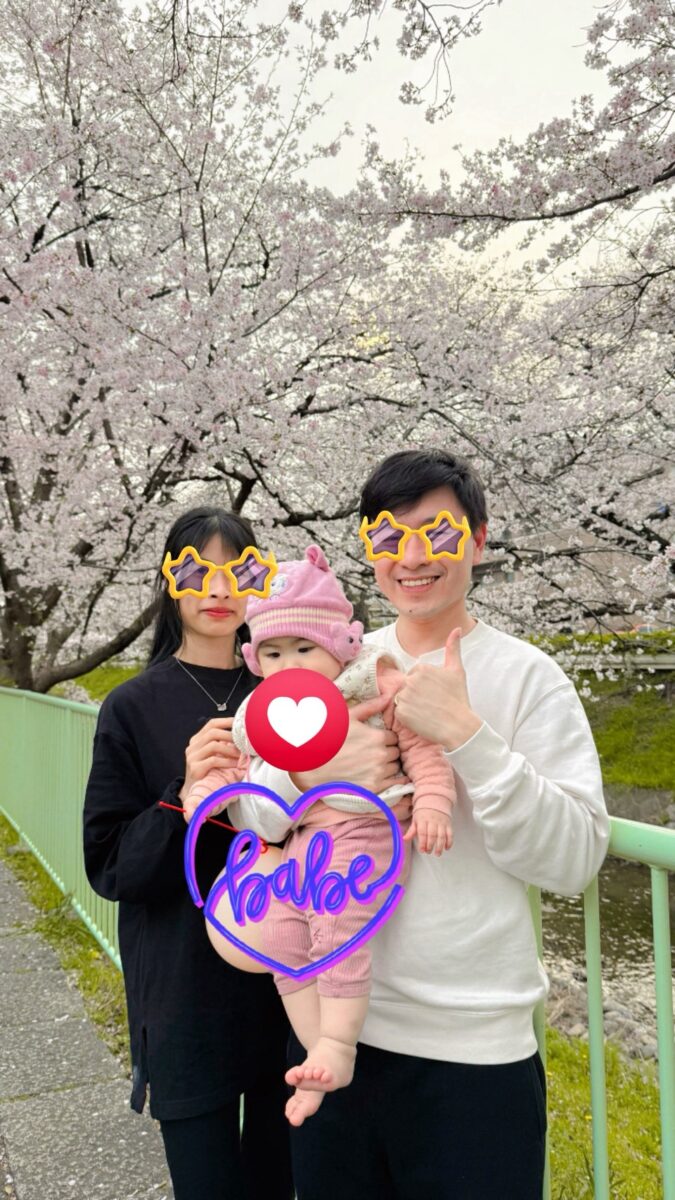 赤ちゃんの写真を撮ってたら、自転車で通りかかったおじさんが「3人で撮ろうか?」って声かけてくれて、この写真を撮ってもらえた。