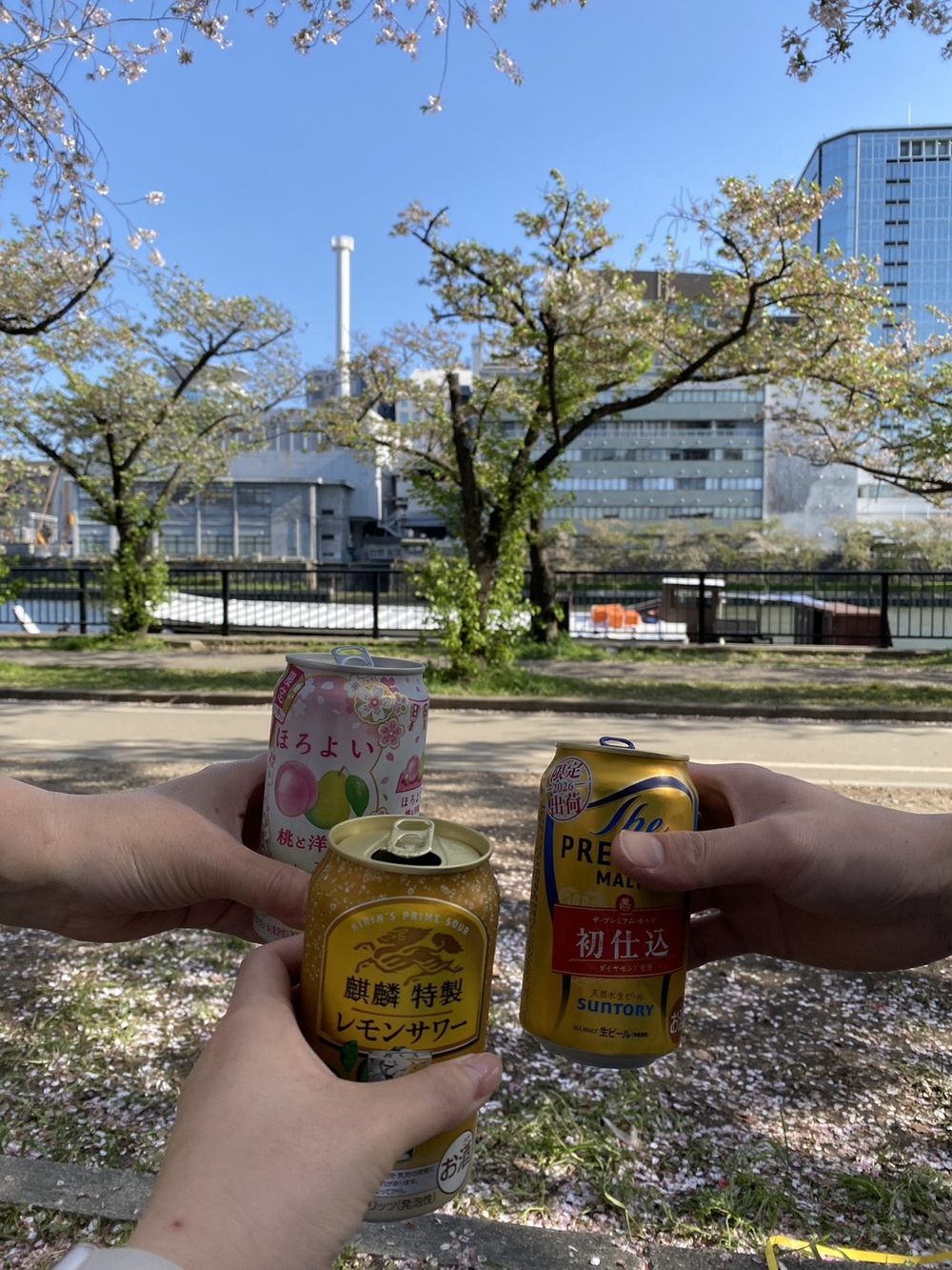 造幣局前の川沿いにてお花見をすることに🌸
