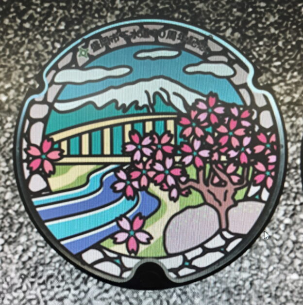 ↑盛岡市の下水道事業70周年記念、「盛岡市の魅力」がテーマ。デザインは盛岡さんさ踊り、盛岡城です。
