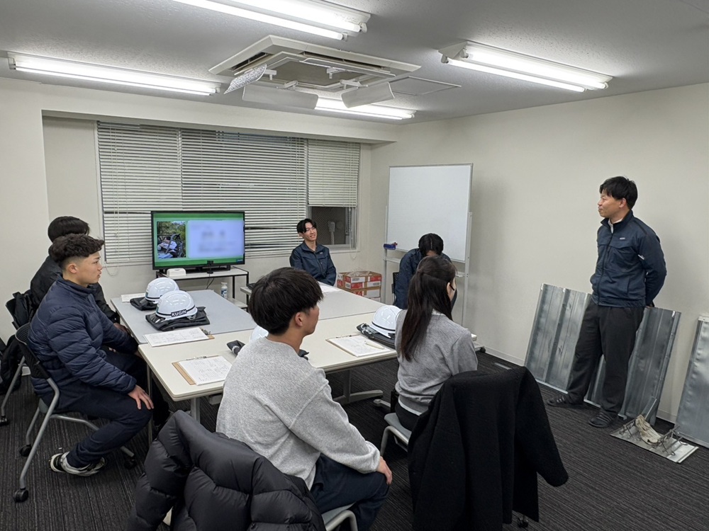 当日は対面形式で会議室に集まり、「クギンを知ってもらう」ことをテーマに、社内の雰囲気や工事の基礎知識、そしてクギンの理念について理解を深めていただきました。