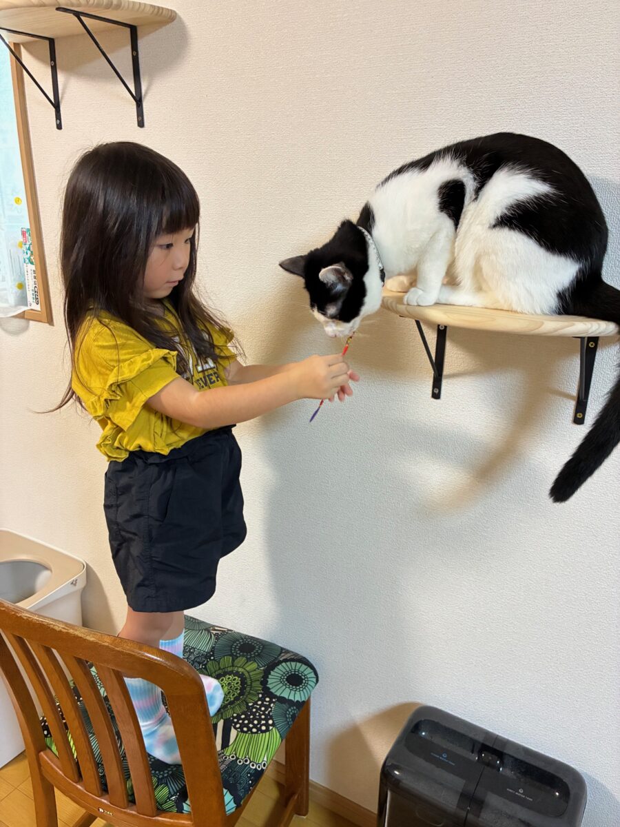 娘たちが寝ると近寄って遊んでとすりすりしてくるところがかわいい