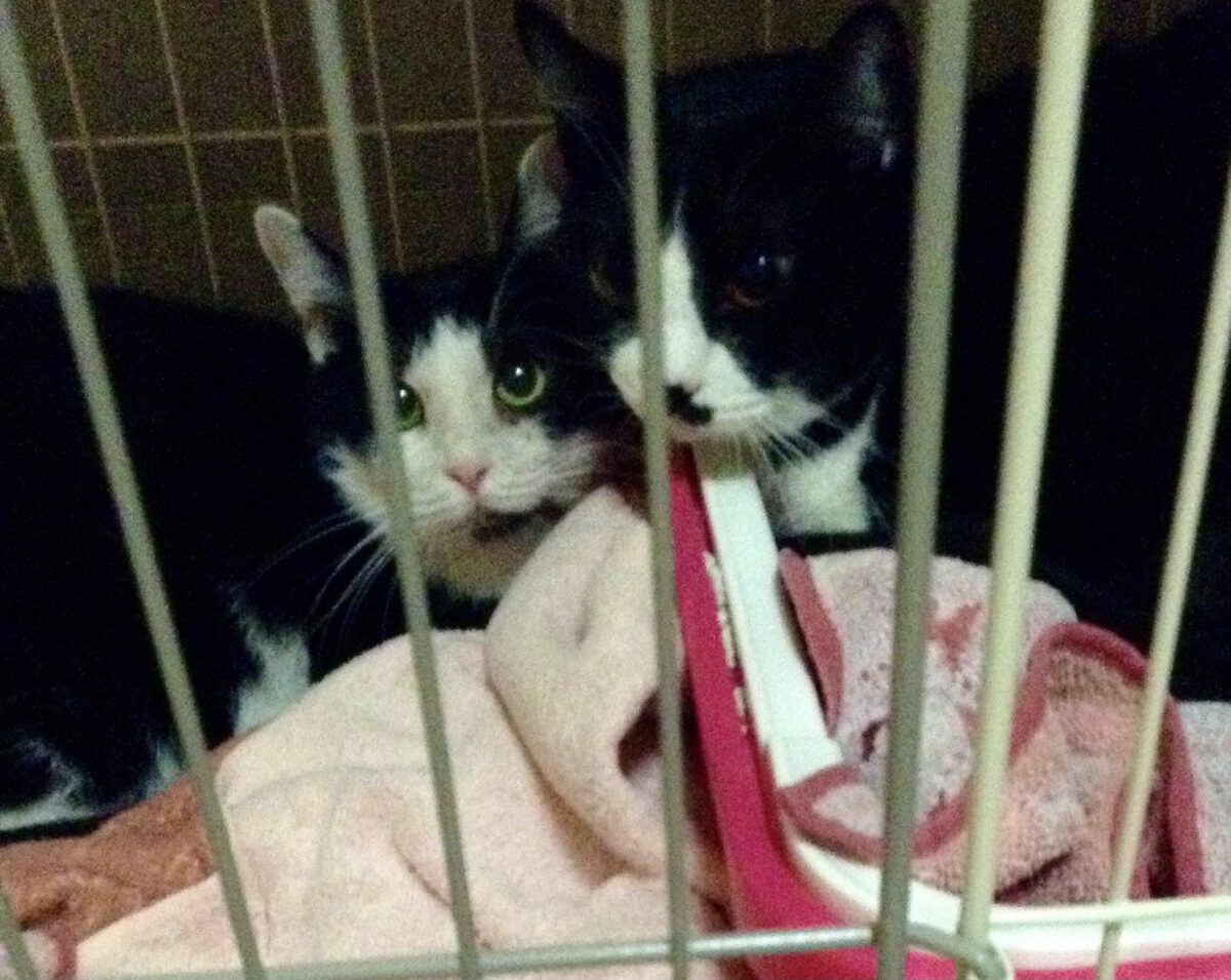 最初はケージに2匹で身を寄せ合って怯えて、借りてきた猫状態でした。