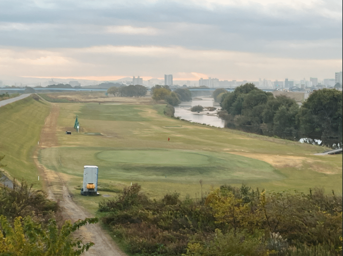 川の真ん中に、小さなゴルフ場みたいな場所がぽつんとあった。