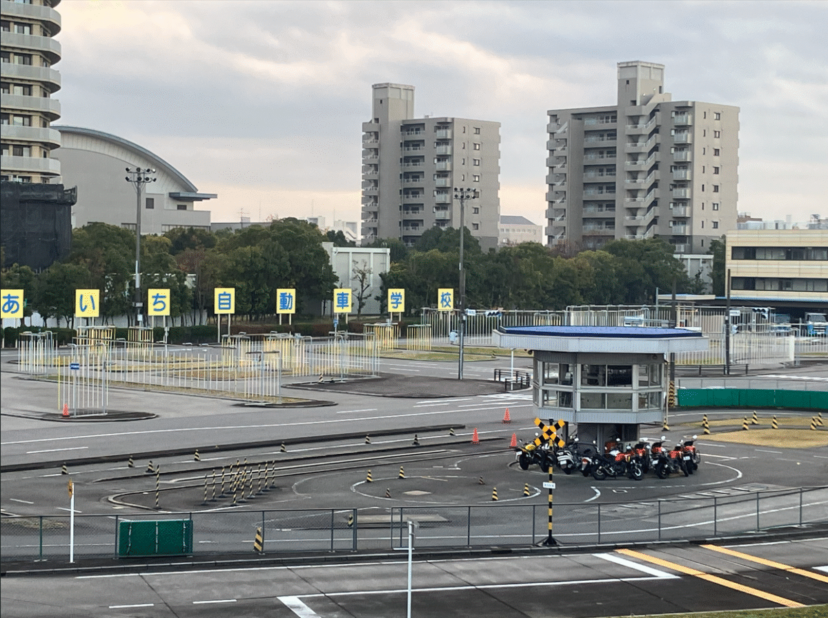 橋を渡りきると、自動車学校の広い練習場が静かに広がっていた。