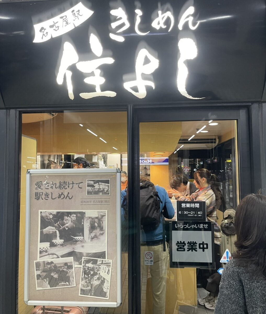 到着してすぐにまずは新幹線のホームで「住よし」の味噌きしめんを頂きました。