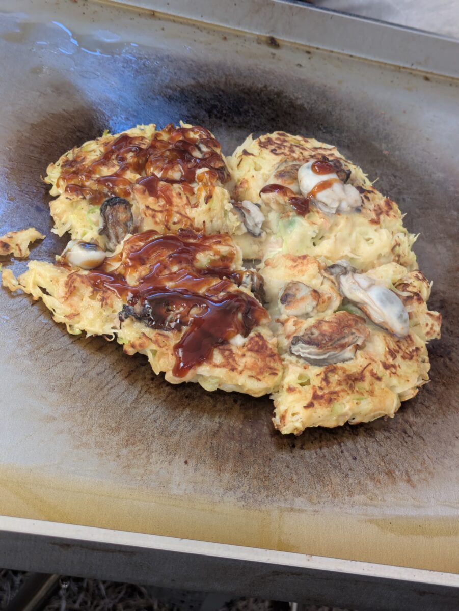 鉄板で宮崎牛のステーキや牡蠣オコを美味しい芋焼酎と★